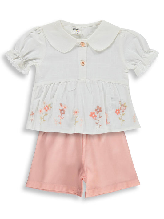 Civil baby puan empirme şortlu 6-18 ay takım - ekru