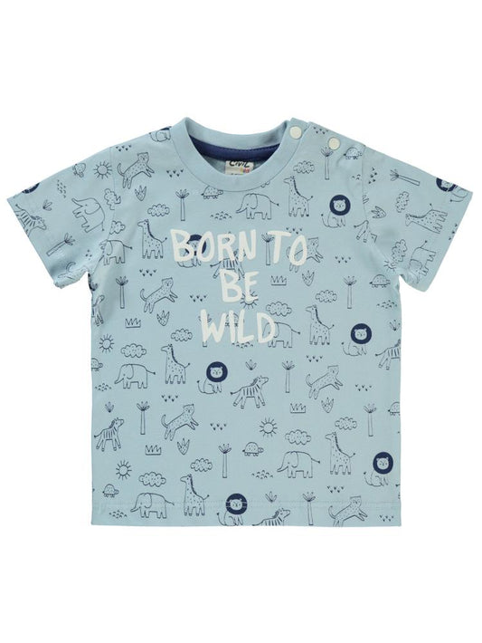 Civil baby palmiye nakışlı 6-18 ay tişört - mavi