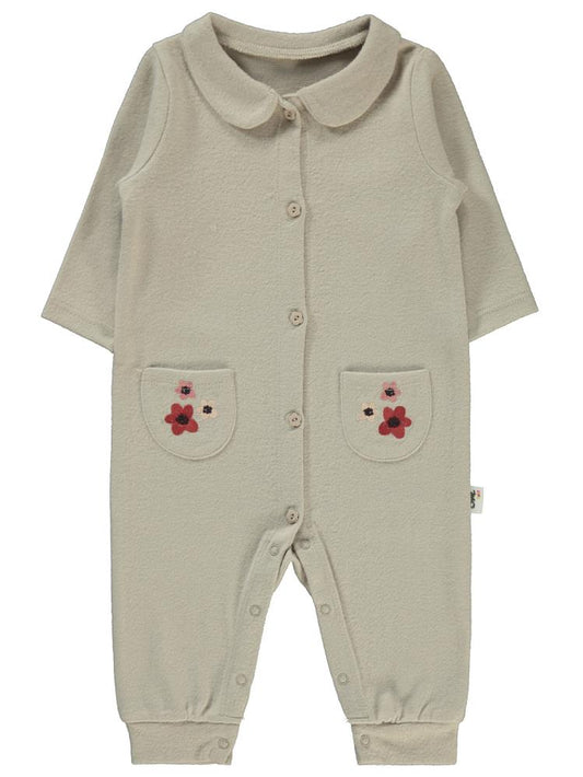 Civil baby çiçek nakışlı 6-18 ay tulum - bej