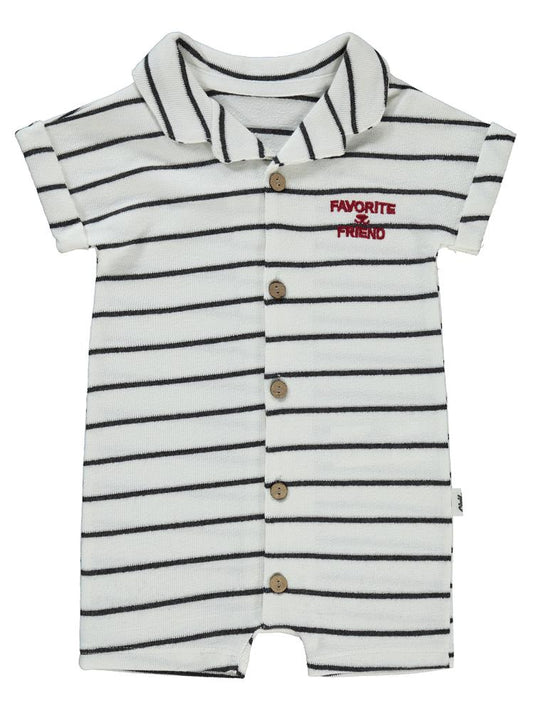 Civil baby selanik çizgili nakışlı 6-18 ay tulum - ekru
