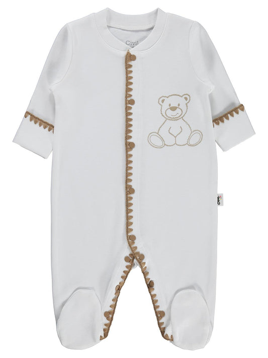 Civil baby oturan tatlı ayı baskılı 1-9 ay tulum - ekru