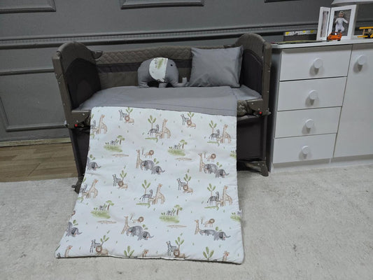 """100 pamuklu kumaştanÜretilmiştir.Dolgu malzemesi boncuk elyaftır.60x120 ve 70x110 park beşikler ile kullanılabilir"" Ürün İçeriği ""1 adet yorgan1 adet yastık1 adet...