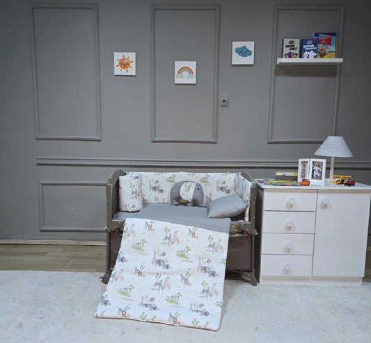 Yuar Baby Neşeli Hayvanlar Beşik Uyku Seti 80x130 cm Ürünümüz 100% pamuklu kumaştan üretilmiştir. OEKO-TEX® kumaş standardına uygundur....