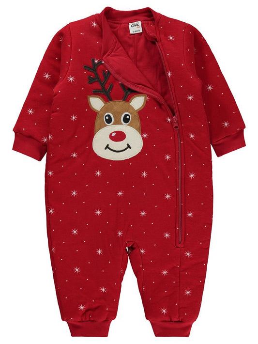 Civil baby noktalı yıldız empirme patikli 6-9 ay uyku tulumu - kırmızı