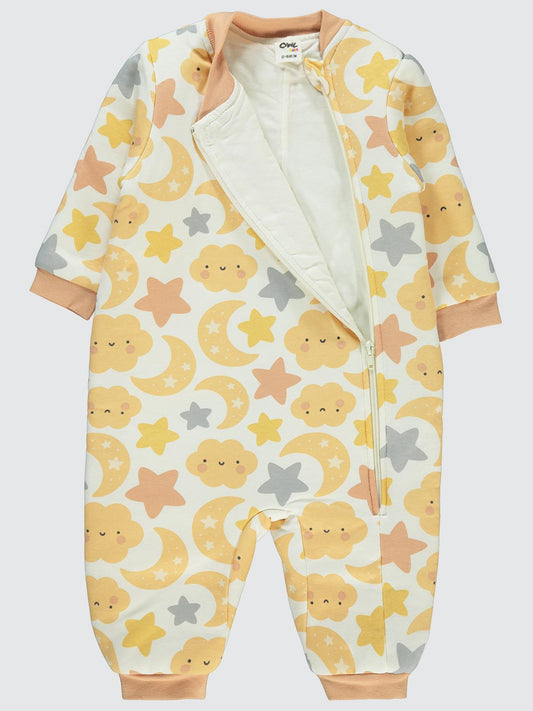 Civil baby bulutlu yıldız empirme 12-18 ay uyku tulumu - ekru