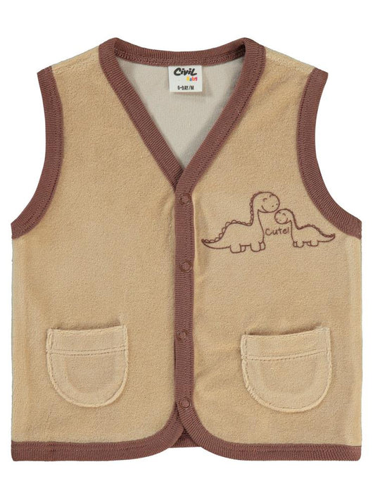 Civil baby dinozor baskılı cepli 6-18 ay yelek - kahverengi