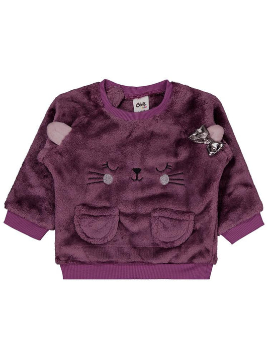 Civil baby cep detaylı meow nakışlı 6-18 ay takım - lila