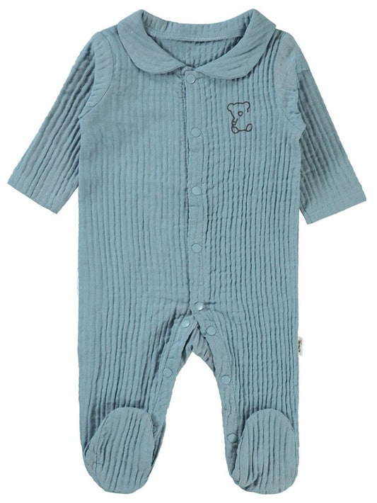 Civil baby yakalı ayıcık baskılı 1-9 ay tulum - mavi