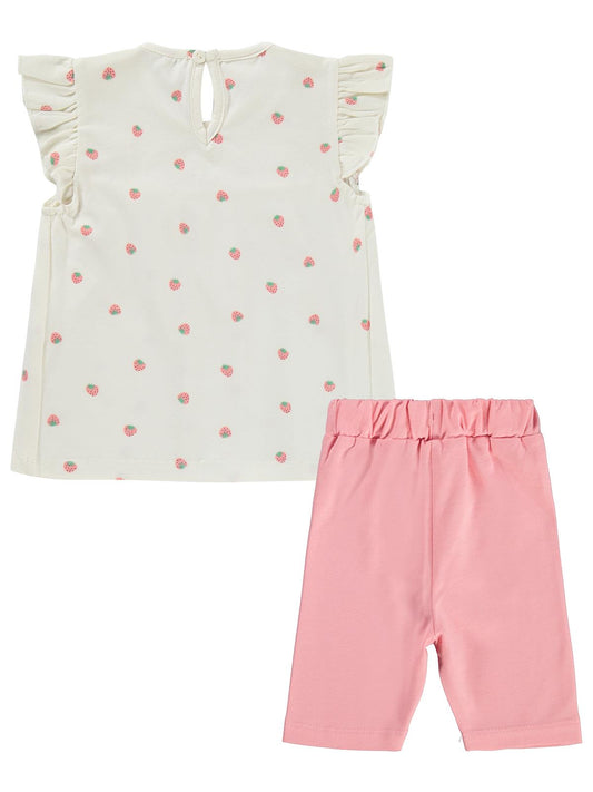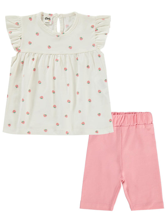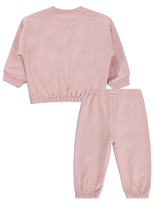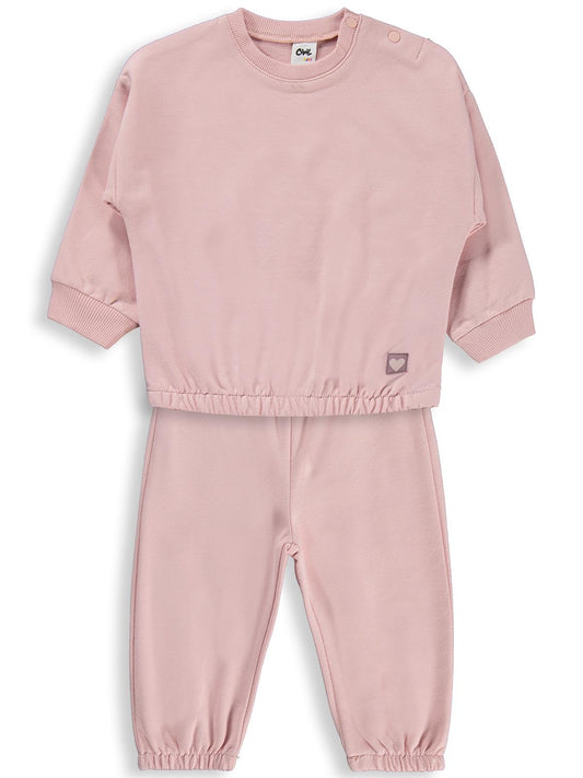 Civil baby kız bebek düz basic kalpli 6-18 ay takım - pembe