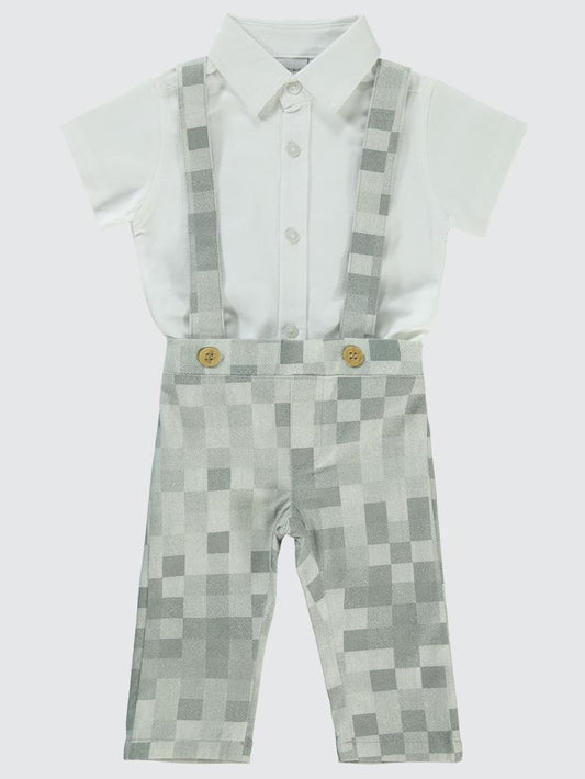 Erkek bebek kıyafetlerinde çoğu zaman daha basit bir renk paleti kullanır. Gri, beyaz, mavi ve yeşil gibi renkler öne çıkar. Elbiseler, tulumlar, bodyler ve gömlek-pantolon takımları basit bir desen veya hayvan figürleri içerebilir. Erkek bebek kıyafetleri genellikle düğmeler, cepler ve spor detaylar içerir.