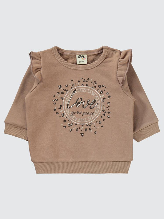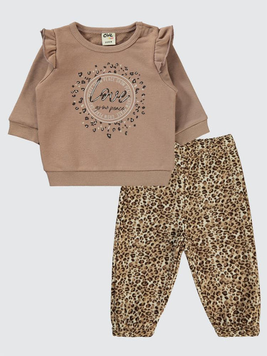 Civil baby love baskılı 6-18 ay takım - kahverengi