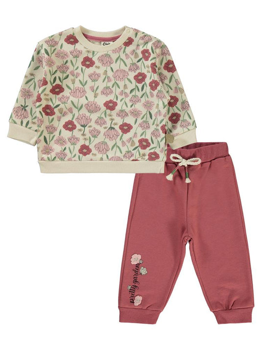 Civil baby flowery baskılı 3'lü 6-18 takım - pudra