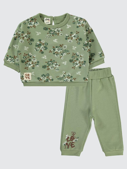 Civil baby çiçek baskılı 6-18 ay takım - yeşil
