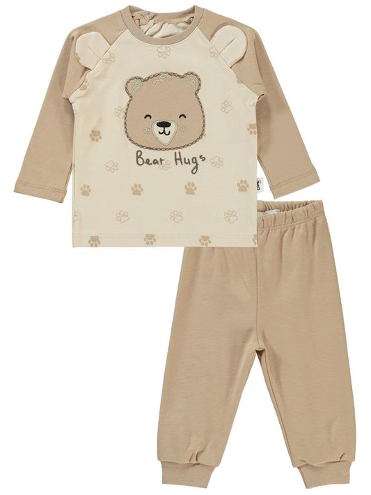Civil baby kabartmalı ayıcık baskılı 6-18 ay takım - bej