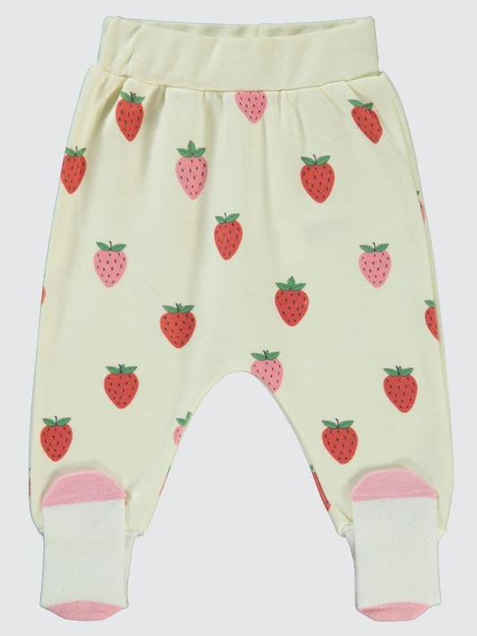 Civil baby çilek baskılı 1-6 ay tek alt bebe - ekru