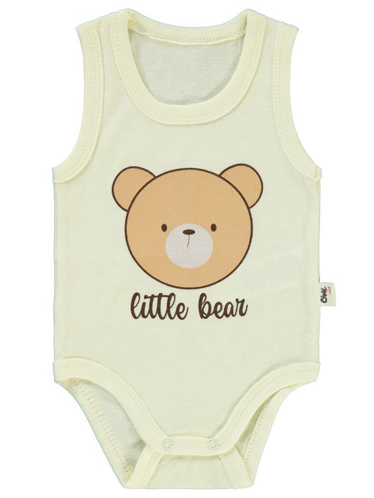 Civil baby ayıcık baskılı 0-3 yaş çıtçıtlı badi - ekru