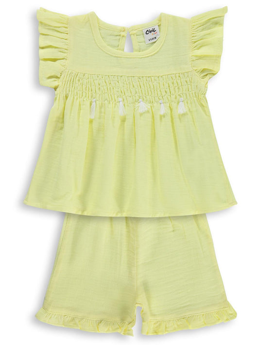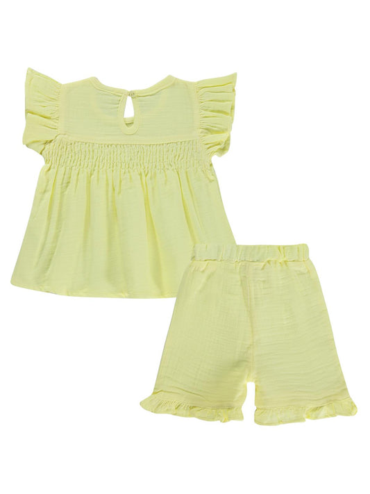 Civil baby çizgi empirmeli fırfır 6-18 ay takım - sarı