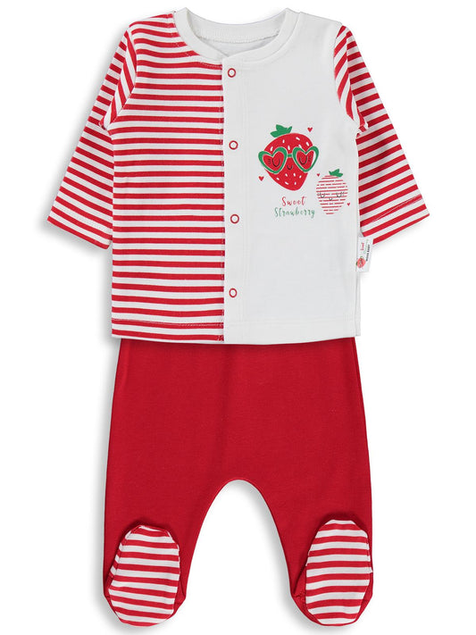 Nova baby çilek kokulu önden açık 1-6 ay pijama takımı - ekru