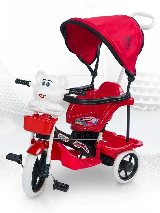 Bebelow fayton itmeli ebeveyn kontrollü tenteli üç tekerlekli bisiklet - kırmızı