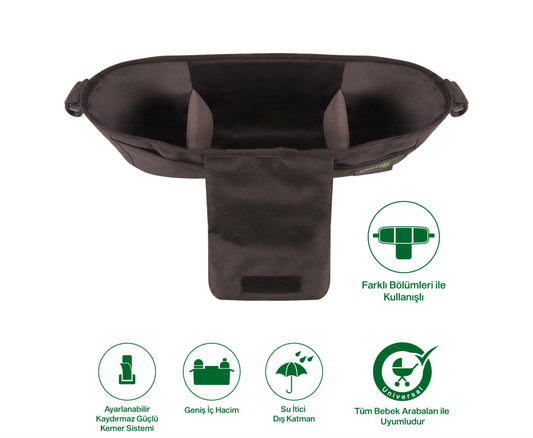 Bebek Arabası Organizer Çanta • Tüm bebek arabaları ile uyumludur.• Birkaç saniye içinde kolayca sökülüp takılabilir.• Ayarlanabilir ve kaydırmaz güçlü...