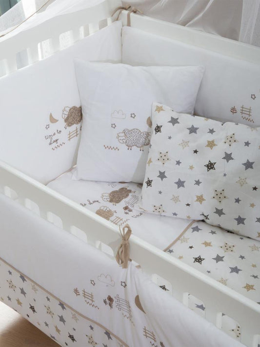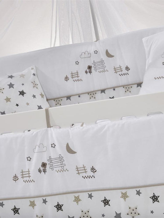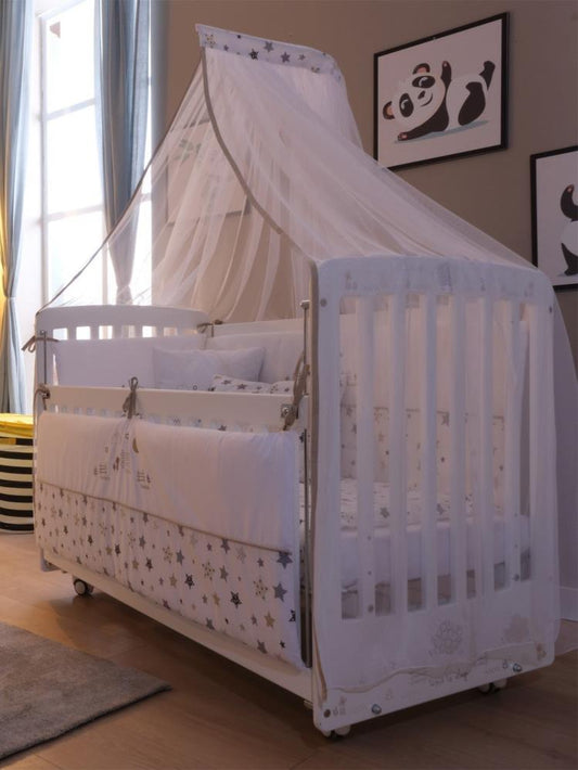 "Anne Yanı Ahşap Sallanır Beşik - 60*120 cm Beyaz Ahşap Beşik + Yatak + Kuzu Nakışlı Uyku Seti + Cibinlik...