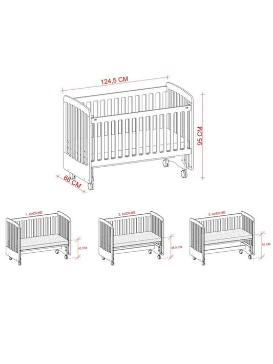 "3 farklı pozisyon ayarlanabilen ve annenin yatağı ile aynı hizaya gelebilen özel mekanizma, Ölçü; içten içe 70*120 cm, Anne yanı...