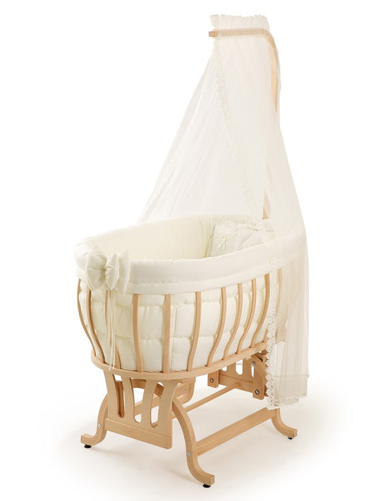 " Beşiklerimiz %100 doğal lamine gürgen ağacından üretilmiştir.Zararlı kimyasallar içermez tamamen doğal ve bebek sağlığına uygundur.Keskin köşeleri önlemek amacıyla oval...