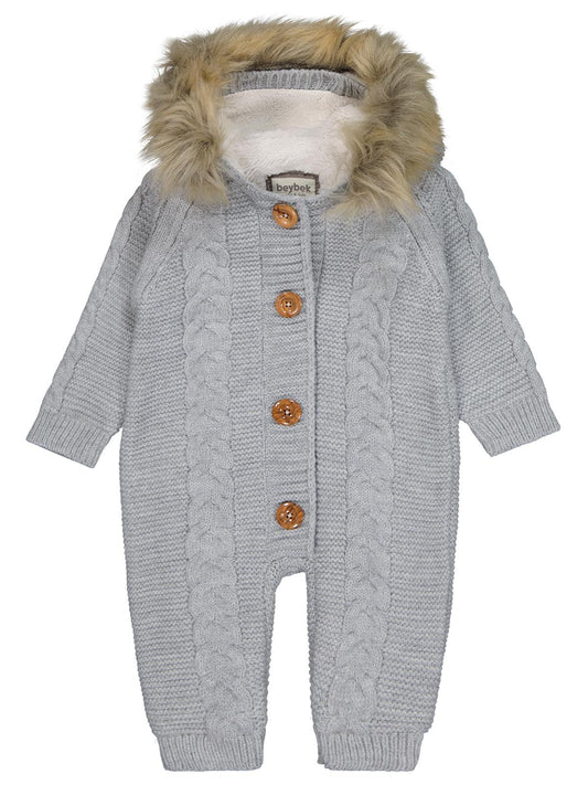 Beybek kapşonlu 3-12 ay tulum - mavi