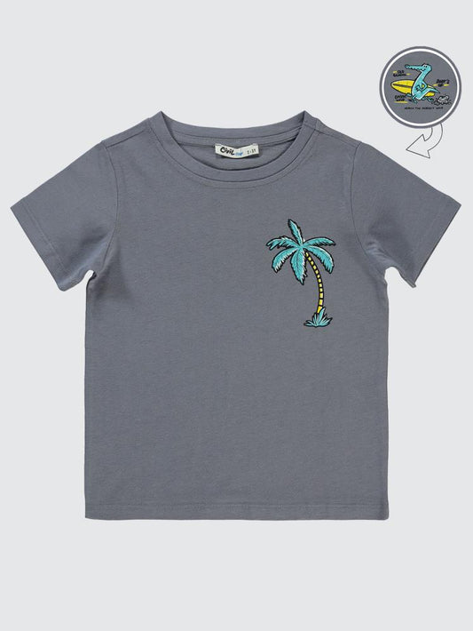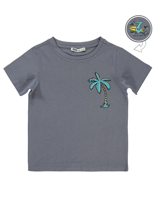 Civil boys palmiye baskılı 2-5 yaş tişört - gri