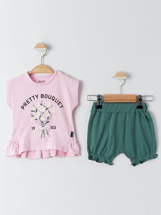 Minidünya tekstil daisy şortlu 6-18 ay takım - pembe