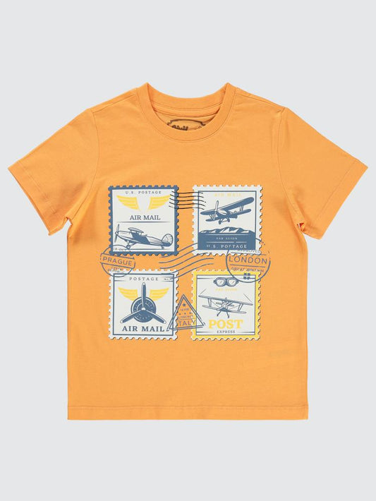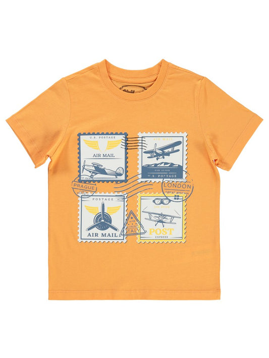 Civil boys kartpostal baskılı 10-13 yaş tişört - turuncu