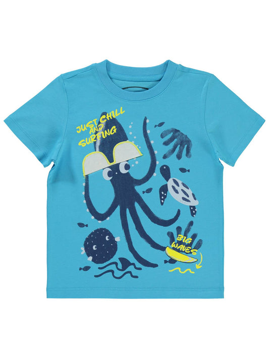 Civil boys gözlük nakış ahtapot baskılı 2-5 yaş tişört - mavi