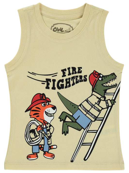 Civil boys fıre fıghters baskılı sıfır kol 2-5 yaş tişört - bej