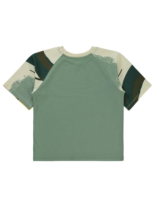 Civil boys serbest fırça baskılı reglan kol 6-9 yaş tişört - haki