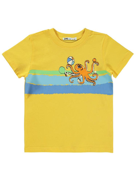 Civil boys ahtapot baskılı 2-5 yaş tişört - sarı