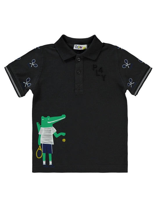 Civil boys flamlı yelkenli nakışlı 6-9 yaş tişört - siyah