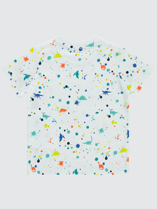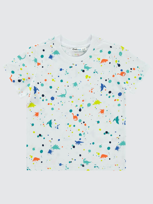 Civil boys sıçratma dino baskılı empirme 2-5 yaş tişört - beyaz