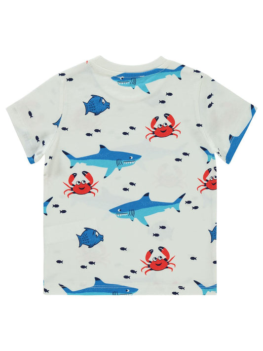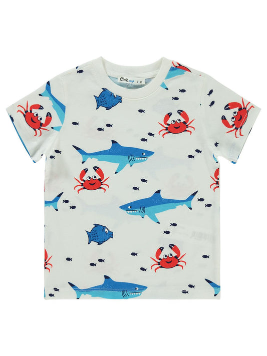 Civil boys yengeç ve balıklar emprimeli 2-5 yaş tişört - ekru