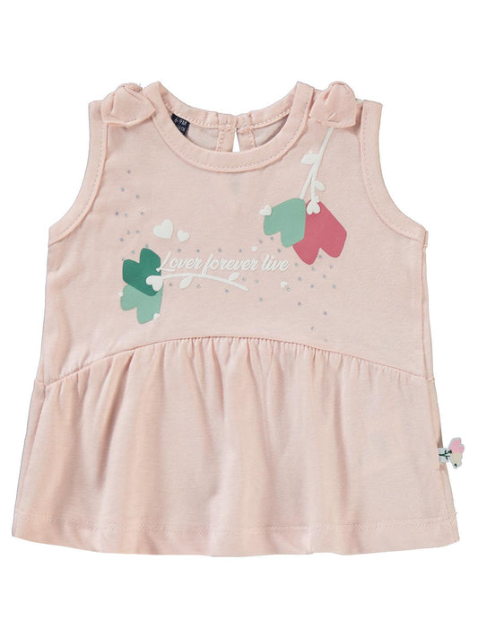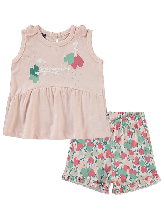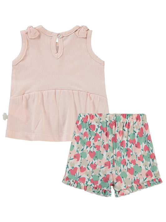 Cocoland çiçek desenli şortlu 2-5 yaş takım - pudra