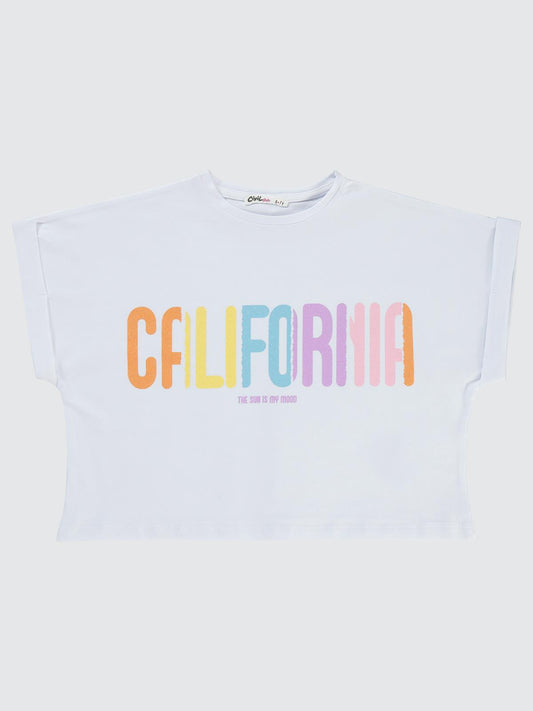 Civil girls california baskılı 10-13 yaş tişört - beyaz