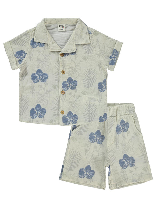 Civil boys yaprak baskılı gömlekli 2-5 yaş takım - hardal
