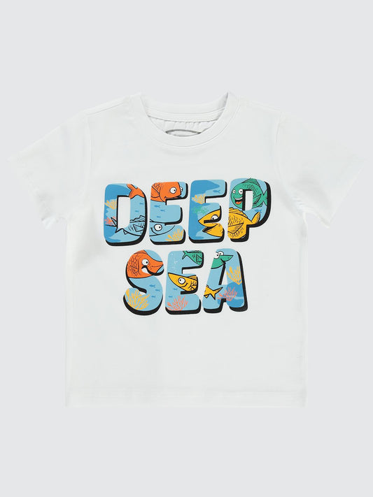 Civil boys deep sea baskılı 2-5 yaş tişört - beyaz