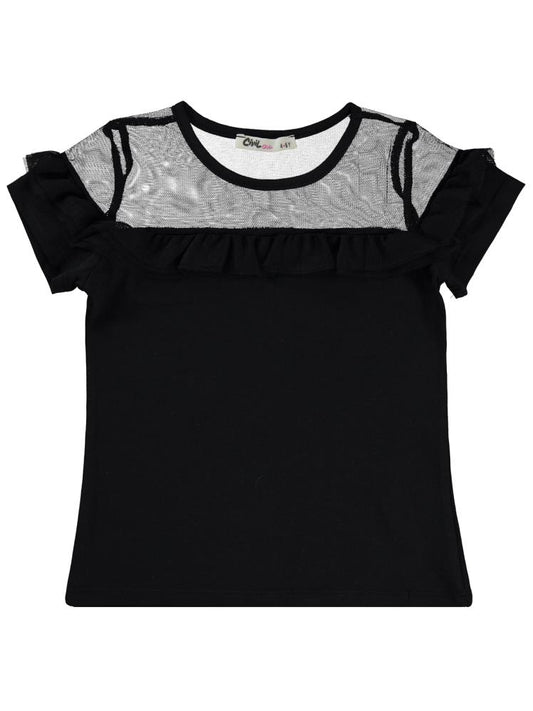 Civil girls fırfır tüllü 4-9 yaş tişört - siyah
