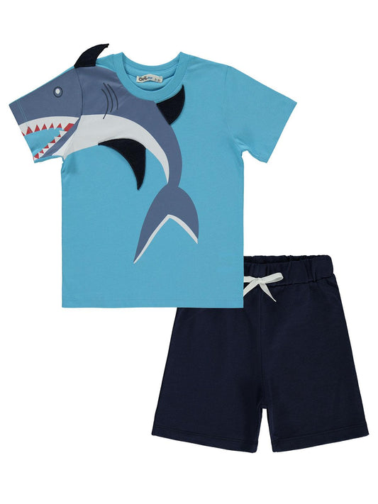 Civil boys köpek balığı baskılı 2-5 yaş takım - mavi