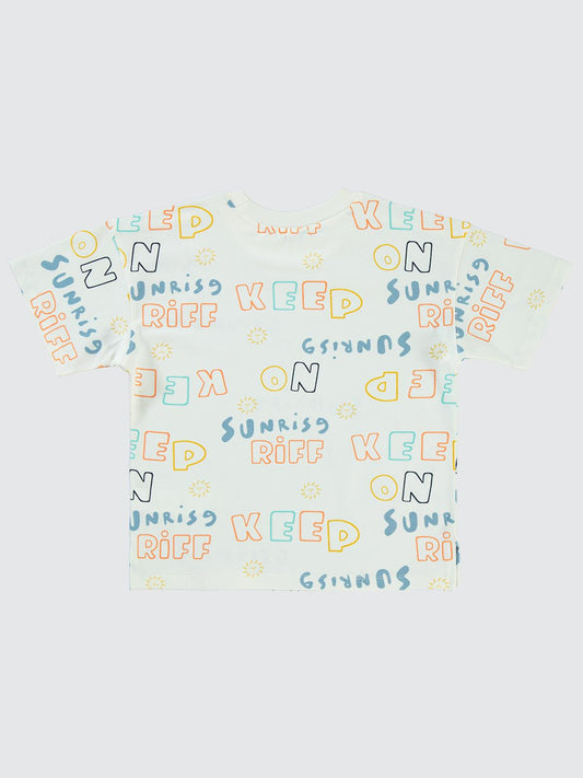 Civil boys flamlı yelkenli nakışlı 6-9 yaş tişört - ekru