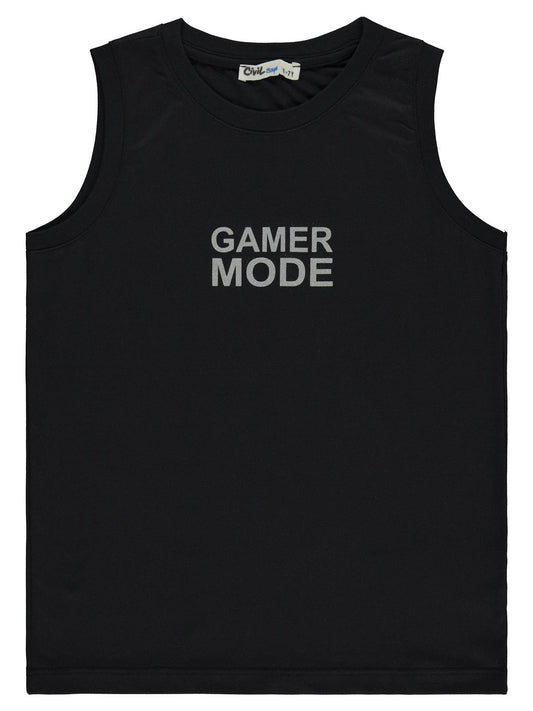 Civil boys gamer mode reflektör baskılı sıfır kol 6-9 yaş tişört - siyah