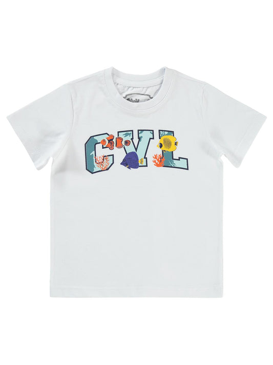 Civil boys cvl balıklar baskılı 2-5 yaş tişört - beyaz