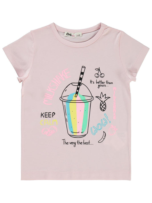 Civil girls milkshake baskılı 2-5 yaş tişört - pembe