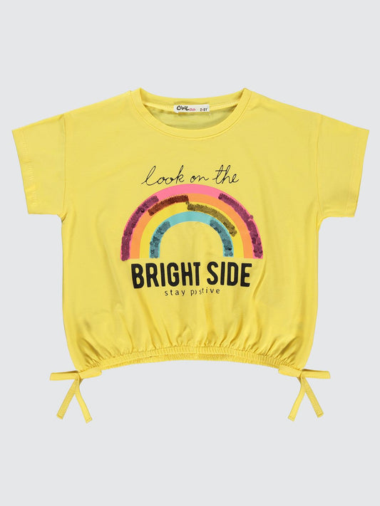 Civil girls gökkuşağı baskılı 2-5 yaş tişört - sarı