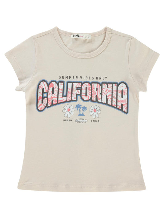 Civil girls calıfornıa baskılı 2-5 yaş tişört - pudra